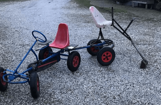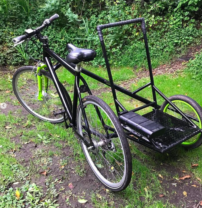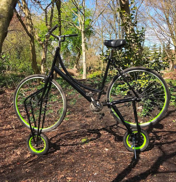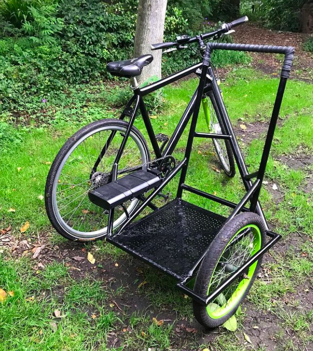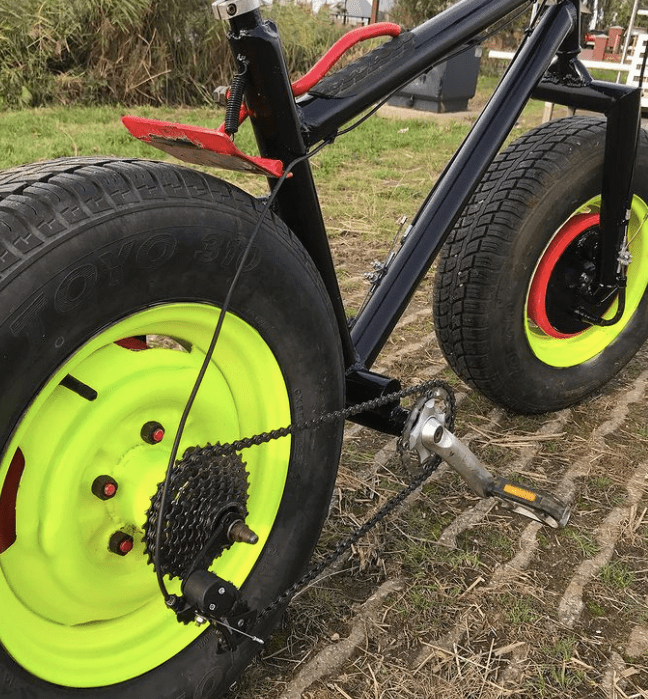 Fiets van autowielenElektrische fiets met zijspanAchteruit trap fietsVerkeerde kant op sturenGraafmachineTallbikes